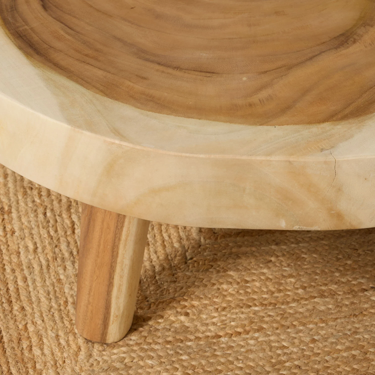 La mesa de centro Natura elaborada con madera maciza de Trembesí tiene un original y minimalista diseño. Su tapa irregular, elaborada con una sola pieza, aporta un toque desenfadado a todo el salón.